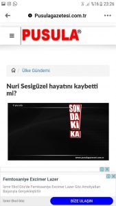 Zonguldak’ta faaliyet gösteren Pusula Gazetesi yine ölmeyen birini öldürdü. Hızlı haber atmak ve daha çok hit almak adına kamuoyunu yanıltıcı haberler paylaşmaya devam eden Pusula Gazetesi Sanatçı Nuri Sesigüzel’in koronavirüs’ten hayatını kaybettiğini yazdı. Ulusal basında Nuri Sesigüzel’in ölmediğine dair açıklamalar yer alınca haber değiştirilerek “Nuri Sesigüzel hayatını kaybetti mi?” başlığı ile yeniden servis edildi. Pusula Gazetesi daha öncede Kilimli CHP eski İlçe Başkanı Fevzi Bekaroğlu'nu hastanede tedavi görürken öldüğünü yazarken yine Zonguldak’ta Koronavirüs’ten ilk ölen kişiyi yazan gazetecileri yalan haber yapmakla suçlamış, daha sonra ise gerçek ortaya çıkmış ve gazeteciler adalet önünde aklanarak üzerine atılan suçtan beraat etmişti.