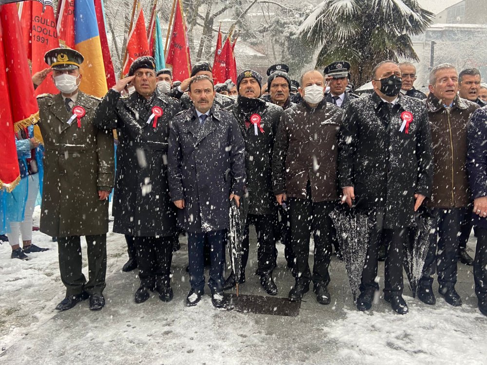 Şehitlik Anıtı önünde çelenk sunum töreni gerçekleştirildi. 18 Mart Çanakkale Zaferi nedeniyle Zonguldak’ta, Şehitlik Anıtı önünde çelenk sunum töreni gerçekleştirildi. Törene, Zonguldak Valisi Mustafa Tutulmaz, Belediye Başkanı Dr. Ömer Selim Alan ve il protokolü katıldı. Valilik, Belediye Başkanlığı ve Şehit Aileleri Derneği’ne ait çelenklerin Şehitlik Anıtı’na bırakılmasının ardından saygı duruşunda bulunuldu, İstiklal Marşı okundu. Arkasından Şehit Aileleri Derneği Başkanı Mustafa Yorulmaz günün anlam ve önemine ilişkin konuşmasını yaptı.