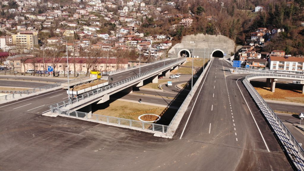 Öte yandan hayata geçirilen tüneller ve köprülü kavşak çalışması drone ile havadan da görüntülendi.