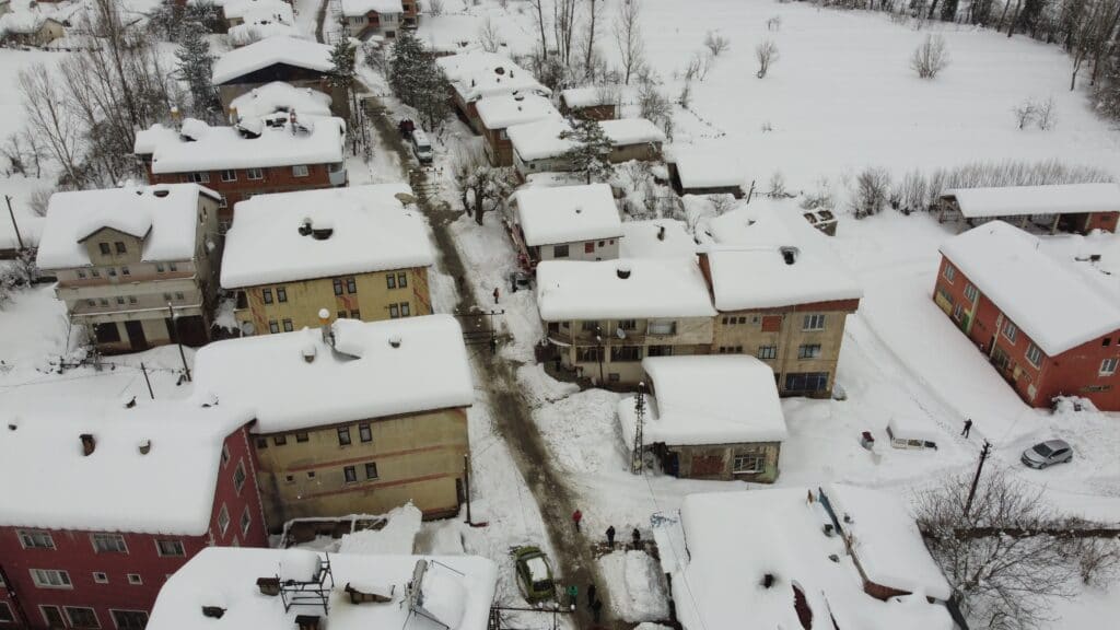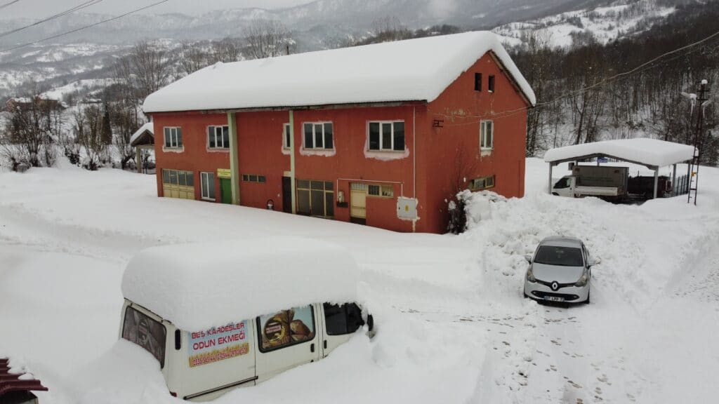Bartın’da 4 gündür etkili olan kar yağışının ardından 500 rakımlı Aydınlar köyünde kar kalınlığı 1,5 metreye ulaştı. Araçların kar altında kaldığı köyde vatandaşlar karları temizlemek için çalışıyor.