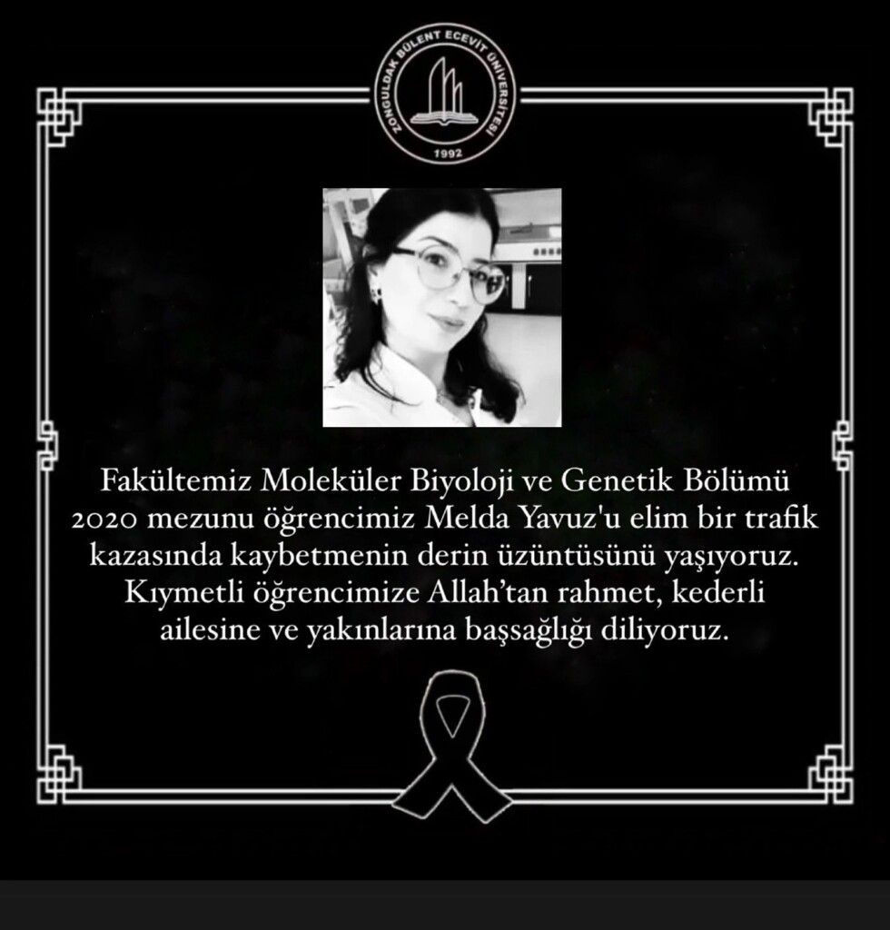 Zonguldak Bülent Ecevit Üniversitesi mezunu olan Melda Yavuz, bir trafik kazası sonucu hayatını kaybetti. 22 yaşındaki Melda Yavuz, Çorum Bayat Devlet Hastanesi'nde laborant olarak görev yapmaktaydı. Kazada, Mithat K. (54) yönetimindeki Amasya Mis Turizm'e ait 05 ACF 103 plakalı yolcu otobüsü, Yozgat'ın Battal köyü yakınlarında sürücüsünün direksiyon hakimiyetini kaybetmesi sonucu devrildi. Kazada sürücü ve muavin ile birlikte 4'ü ağır 19 kişi yaralandı. Yaralılar Yozgat Şehir Hastanesi ve Yozgat Bozok Üniversitesi Araştırma ve Uygulama Hastanesi ile Sorgun Devlet Hastanesinde tedavi altına alındı. Ne yazık ki, ağır yaralı yolculardan 64 yaşındaki Dindar Kelsaka ve Zonguldak Bülent Ecevit Üniversitesi mezunu olan Melda Yavuz hayatını kaybetti. Melda Yavuz'un ölümü, Zonguldak Bülent Ecevit Üniversitesi camiasında büyük üzüntü yarattı. Üniversitenin resmi hesabından taziye mesajı yayınlanarak, genç laborantın kaybı tüm akademik topluluğu derin bir üzüntüye boğdu.