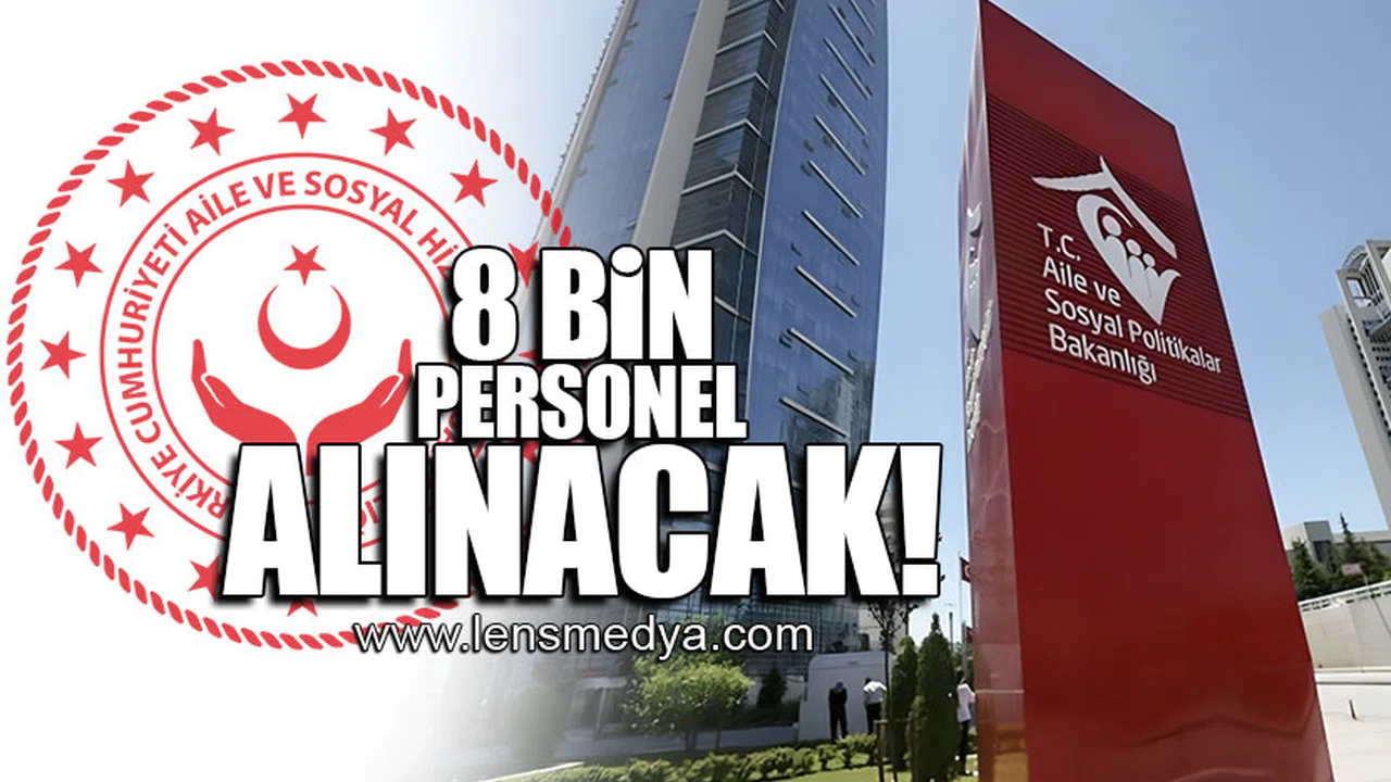 Bakanlık tarafından sınavsız 8 bin personel alınacağı duyuruldu.Aile ve Sosyal Hizmetler Bakanlığı, Resmi Gazete'de yayımlanan ilanla merkez ve taşra teşkilatlarında istihdam edilmek üzere yazılı ve sözlü sınav yapılmaksızın 8 bin sözleşmeli personel alımı yapacak. Başvurular ise 21 Şubat-11 Mart tarihleri arasında Cumhurbaşkanlığı Kariyer Kapısı üzerinden e-Devlet şifresi ile gerçekleştirilecek. Adaylar, "isealimkariyerkapisi.cbiko.gov.tr" adresinden başvuru yapabilecekler.