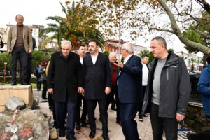 Zonguldak, Kozlu ve Kilimli Belediye Başkanları ve Ak Parti Zonguldak İl Başkanı Çağlayan geçtiğimiz günlerde Zonguldak’ı etkisi altına alan sağanak yağış ve fırtına sonrası meydana gelen sel felaketinin ardından ‘Afet Bölgesi’ ilan edilen Kdz. Ereğli Belediye Başkanı Halil Posbıyık’a geçmiş olsun ziyaretinde bulundu. Zonguldak Belediye Başkanı Ömer Selim Alan, Kozlu Belediye Başkanı Ali Bektaş, Kilimli Belediye Başkanı Kamil Altun, Ak Parti Zonguldak İl Başkanı Mustafa Çağlayan bugün Kdz. Ereğli Belediye Başkanı Halil Posbıyık’ı ziyaret etti ve geçmiş olsun dileklerinde bulundu. “RABBİM ÜLKEMİZ VE MİLLETİMİZİ TÜM AFETLERDEN KORUSUN” Ziyarette geçmiş olsun dileklerinde bulunan Zonguldak Belediye Başkanı Ömer Selim Alan: "Kdz. Ereğli İlçemizde büyük hasara neden olan fırtına ve aşırı yağışların meydana getirdiği olumsuzlukları yerinde inceledik. Kdz. Ereğli Belediye Başkanı Sayın Halil Posbıyık ve fırtına ve su baskınları nedeniyle iş yerleri zarar gören esnafımızı ziyaret ederek, geçmiş olsun dileklerimizi sunduk. Rabbim, ülkemizi ve milletimizi tüm afetlerden korusun" dedi. “TÜM ZONGULDAK HALKINA GEÇMİŞ OLSUN” Posbıyık’a geçmiş olsun dileklerini ileten Ak Parti İl Başkanı Mustafa Çağlayan ise; Kdz. Ereğli İlçemizde büyük hasara neden olan fırtına ve aşırı yağışların meydana getirdiği olumsuzlukları yerinde inceledik. Kdz. Ereğli Belediye Başkanı Sn. Halil Posbıyık ve fırtına ve su baskınları ne deniyle iş yerleri zarar gören esnafımızı ziyaret ederek, geçmiş olsun dileklerimizi sunduk. Rabbim, ülkemizi ve milletimizi tüm afetlerden korusun” dedi. “TEŞEKKÜR EDİYORUM” Kdz. Ereğli Belediye Başkanı Halil Posbıyık’ta ziyaretten duyduğu memnuniyeti dile getirerek ziyarette bulunan Ak Parti teşkilatına teşekkür etti.