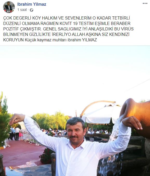 O kadar tedbirli düzenli olmama rağmen kovit-19 testim eşimle beraber pozitif çıkmıştır. Genel sağlığımız iyi. Anlaşıldı ki bu virüs bilinmeyen gizlilikte ilerliyor. Allah aşkına siz kendinizi koruyun” dedi.