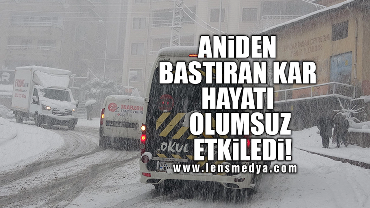 Zonguldak’ta aniden bastıran kar yağışı nedeniyle ulaşımda aksamalar yaşanırken, araçlar yollarda kaldı.