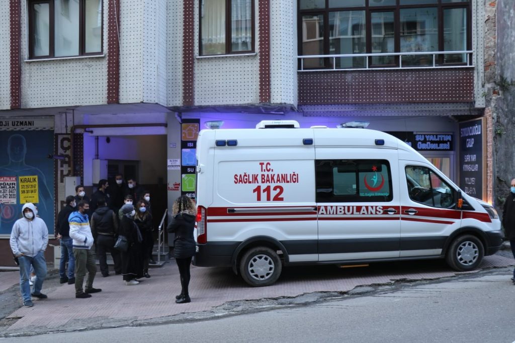 İş yerinin boşaltılmasının ardından acil sağlık ekiplerine ait ambulans da iş yerinin önüne yanaştırıldı.