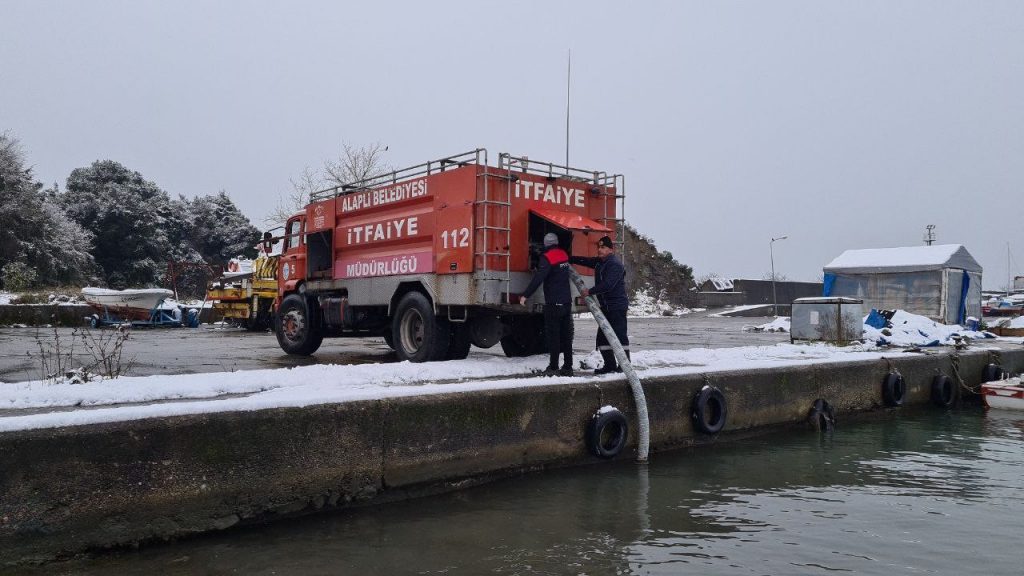 Alaplı Belediyesi, hafta içi etkili olan kar yağışının ardından cadde ve sokaklardaki buzlanmayı deniz suyu ile önlemeye çalışıyor. Alaplı Belediyesi İtfaiye Müdürlüğü ekipleri, yolların kardan temizlenmesi için tuz dökmek yerine denizden çektikleri suyu itfaiye araçlarıyla ana cadde ve sokaklarda oluşan buzlanmayı deniz suyu dökerek önlemeye çalıştı. Tekin, 7 yıldır Deniz Suyu kullanarak karlı kaplı yolları açtıklarını, deniz suyu kullanarak yollardaki buzların hızlı çözülmesini sağladıklarını ve böylece tuz kullanım oranının düştüğünü belirtti.