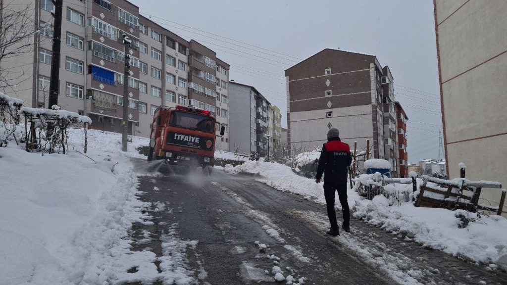 Zonguldak'ın Alaplı ilçesinde yoğun kar yağışı nedeniyle kapanan yollar itfaiye ekiplerinin denizden aldıkları tuzlu su ile açılıyor. Alaplı Belediye Başkanı Tekin,’ Deniz suyu kullanarak buzlanmanın hızlı çözülmesini sağlamak için uzun yıllar bu yöntemi kullanıyoruz’ dedi.