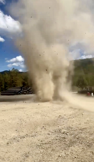 Ulus ilçesinde bulunan tomruk deposunda çıkan ve korkutan hortum çok yakın noktadan vatandaşlar tarafından görüntülendi. Hortum yerdeki tozu kaldırarak gökyüzüne çıkardı. Bir dakikadan fazla süren hortum depo içinde dolaştıktan sonra etkisini kaybetti.