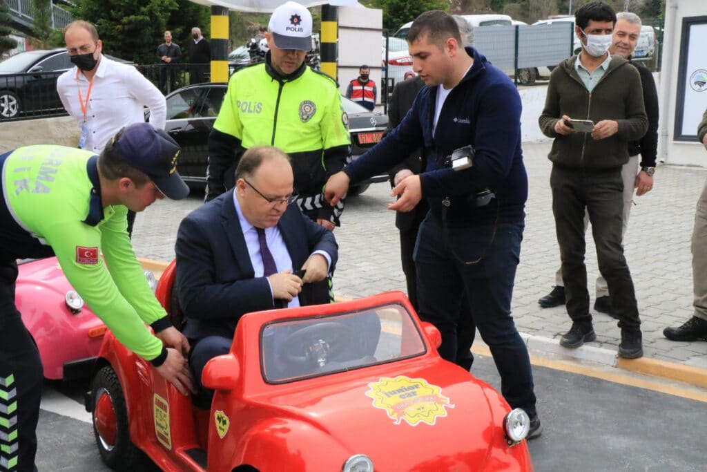 İçişleri Bakanı Süleyman Soylu’nun talimatlarıyla 81 ilde uygulanan ‘Çocuk Trafik Eğitim Parkı’ Zonguldak’ta tamamlandı. Vali Mustafa Tutulmaz da trafik eğitim parkında incelemelerde bulunarak çocuklarla birlikte direksiyona geçerek parkurda tur attı.