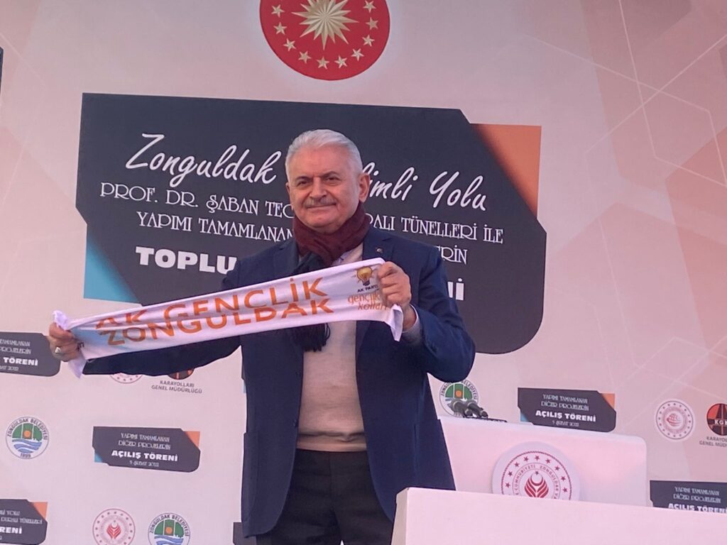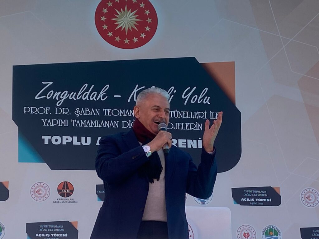 AK Parti Genel Başkanvekili Binali Yıldırım, “Madenciler siz yıllarca sanayinin çarklarının dönmesi için çalıştınız. Zonguldak Uzunmehmet’in memleketi, uzun adamdan da selam getirdim. Aynı zamanda merhum Başbakanımız Bülent Ecevit’in de memleketi. Allah rahmet eylesin. Bu memleket, ülke için taş üstüne taş koyan hizmet yapan herkesten Allah razı olsun. Alın terini ekmeğine katarak milletimizin, ülkemizin gelişmesi için çalışan Zonguldak şehri bundan sonra da çok daha güzel şeylere layık. Zonguldak’a hiçbir zaman Cumhurbaşkanımız gelirken, bakanlarımız gelirken eli boş gelmedi. Ya bir temel atma yada bir çok eserin açılışını gerçekleştirmek için burada oldular. Zonguldak yıllarca taşkömürü ile Anadolu topraklarını ısıttı. Şimdi Zonguldak doğalgazıyla Türkiye’yi, milleti ısıtacak. Zonguldak’ta yerli gazımız inşallah 2023’te kullanıma sunulacak. İşte Zonguldak böyle bir şehir, hem üretiyor hem de ülkemizin geleceğine kalkınmasına katkı sağlıyor. Zonguldak’ta çok önemli bir projeyi Cumhurbaşkanımızın iradesiyle hayata geçirdik. Birçok proje hayata geçti. Ama Filyos Projesi kalbidir. Çok karşı çıktılar, engel olmaya çalıştılar. Ancak dedik ki inatta bir murattır bu projeyi gerçekleştireceğiz. Hayırlı uğurlu olsun. Allah hepinizden razı olsun. Filyos ve endüstri bölgesi sadece Zonguldak’ın değil, Bartın’ın Karabük’ün de dünyaya açılan kapısı niteliğindedir. Akdeniz’den dünyanın bütün ülkelerine, Filyos’tan İç Anadolu, Ege ve bütün Ortadoğu’ya ticaretin ve üretimin merkezi Filyos’tan çok yoğun bir şekilde lojistik hizmetler yapılacak. Böylece Zonguldak tekrar bir parlayan yıldız gibi ülkemizin lokomotif illerinin başında gelmeye devam edecek. Bugün de açılışlar gerçekleştireceğiz. Cumhurbaşkanımız Recep Tayyip Erdoğan burada bizim konuşmamızdan sonar şu ekranda sizlerle buluşacak. Sizlere hitap edecek. Açılış öncesi müjdelerini paylaşacak. Az önce Milli Eğitim Bakanımız burada konuşmasında Zonguldak için yapılan birçok eserden bahsetti. Çok okullar yapıldı, çok işler yapıldı. Allah razı olsun. Yapanlardan emeği geçenlerden. Aslında Milli Eğitim Bakanımız da bir Zonguldaklı, 16 sene az değil. Bu şehirde yaşamış. Bu şehirde eğitime, üniversiteye hizmetleri dokunmuş. Şimdide ülkenin her tarafında Cumhuriyetin 100. Yılına giderken geleceğimiz olan gençlerimizi daha donanımlı hale getirmek için büyük hedeflerle çalışmasına devam ediyor. Biz emeğin ve alın terinin diyarı Zonguldak’ı seviyoruz. Sizleri seviyoruz. Ekonomimize değer katan bu güzel şehrimizi daha da geliştirmek için gece gündüz demeden çalışıyoruz. Son üç yılda az sonra Cumhurbaşkanımızın da katılacağı açılışımız için 12 bakanlığımızın, il özel idaremizin, belediyelerimizin yaptığı tam 84 eserin toplu açılışını yapıyoruz. Bunların tutarı 3,5 milyar lira. Helali hoş olsun.