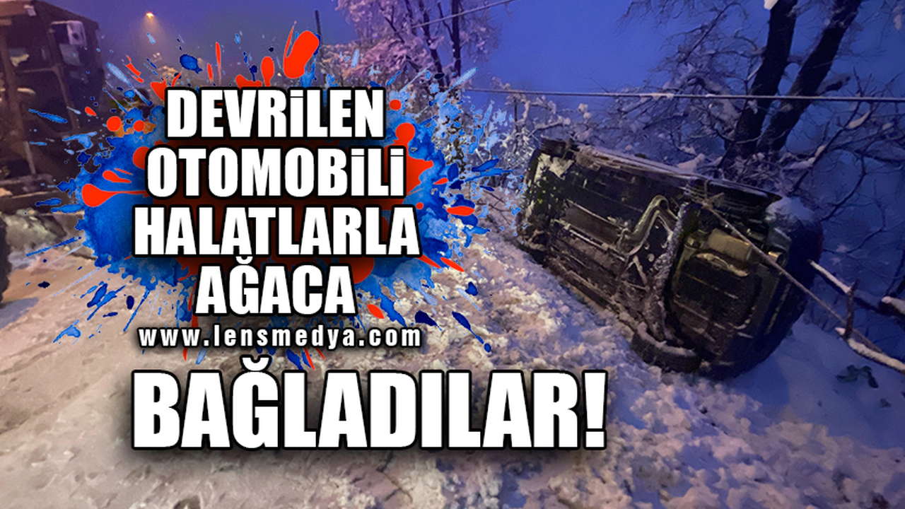 Zonguldak'ta karlı yolda kontrolden çıkan otomobilin devrildiği kazada 1 kişi yaralandı. Yuvarlanma riskine karşı otomobil halatlarla ağaçlara bağlandı. Sağlık ekipleri ambulansın kar nedeniyle ilerleyememesi nedeniyle zor anlar yaşadı.