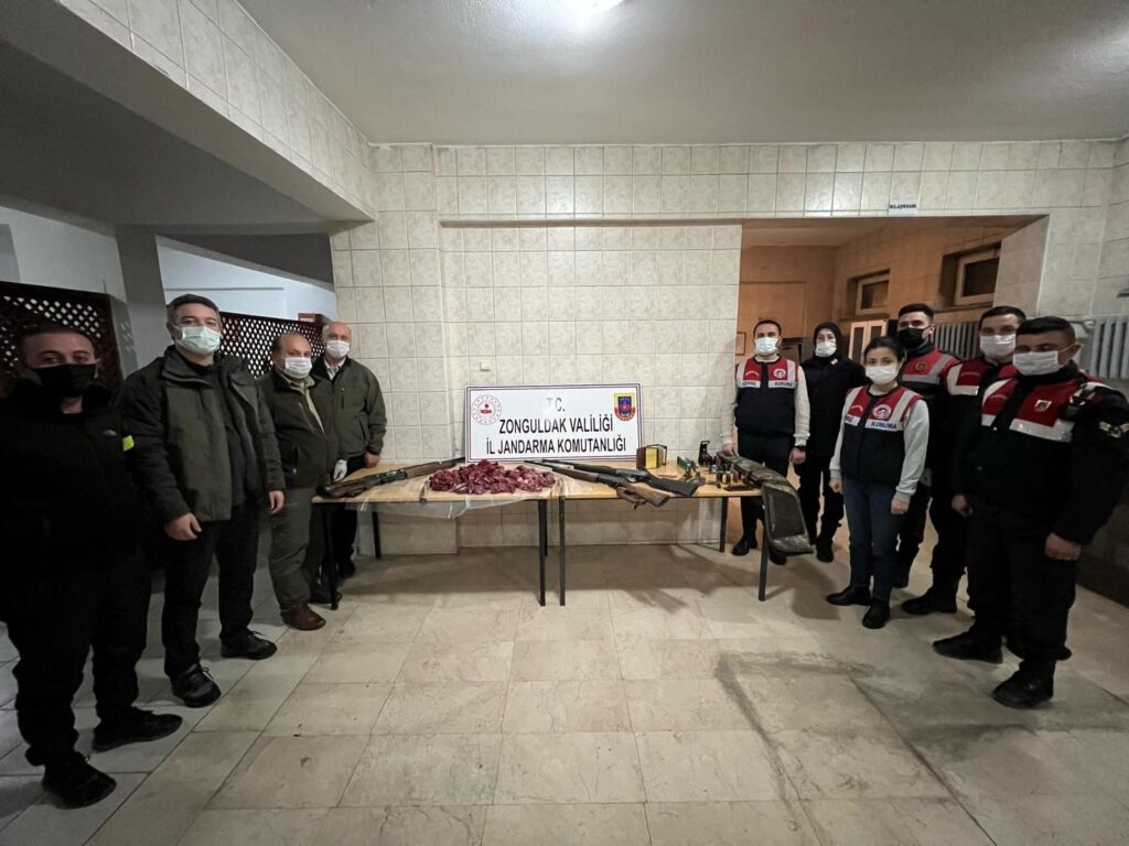 Zonguldak İl Jandarma Komutanlığı ve Doğa Koruma Milli Parklar ekipleri avcılara baskın yaptı. Baskında 15 kilogram ağırlığında karaca eti, 4 adet av tüfeği, 49 adet av tüfeğine ait kartuş, 5 adet avda kullanılan bıçak ele geçirildi.
