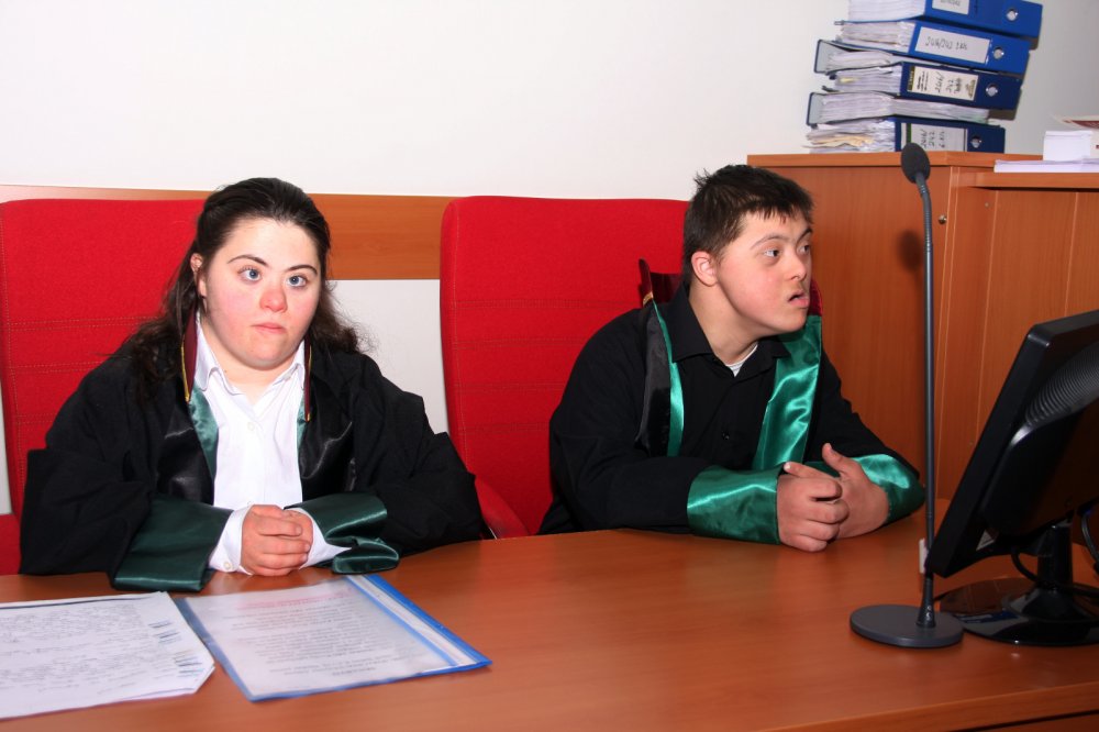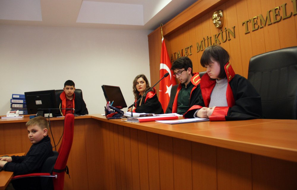 Gerçek duruşma ortamını aratmayan özel çocukların temsili duruşması celsesini Cumhuriyet Başsavcısı Abdurrahim Alan, Adalet Komisyonu Başkanı Ercan Kumhak, Cumhuriyet Savcısı Ümit Efeoğlu, Cumhuriyet Savcısı Fatih Dere’nin yanı sıra özel çocukların yakınları ve öğretmenleri de izledi.
