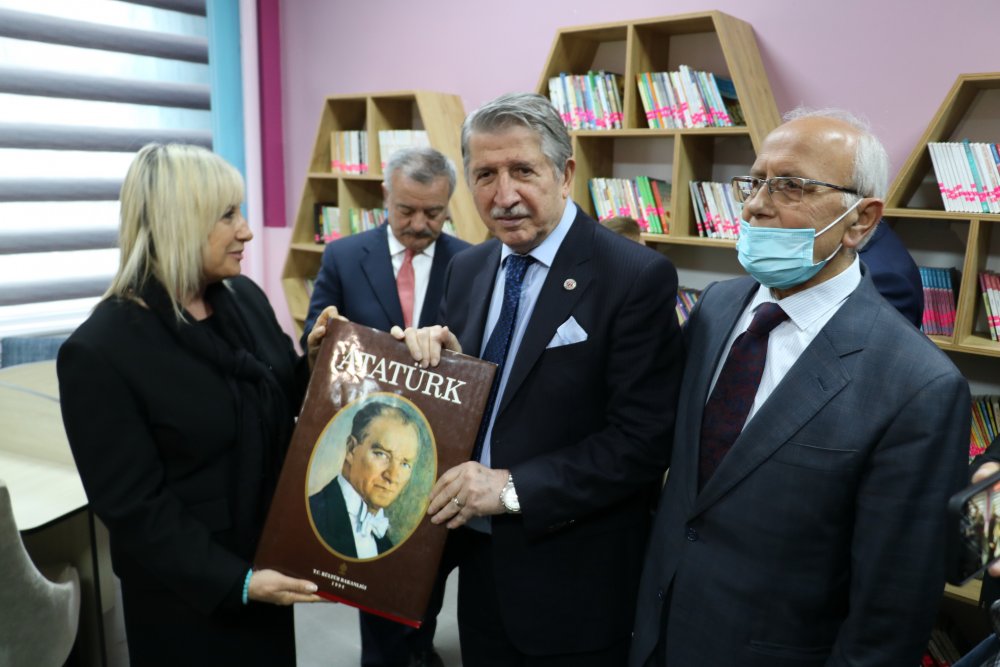 Ardından kütüphanenin açılış kurdelesi kesildi. Köksal Toptan ve beraberindekiler kütüphaneyi gezerek bilgi aldı. Avukat Ali Osman Odabaş; eşi Av. Hikmet Odabaş anısına yaptırdığı kütüphanenin açılışında yaptığı konuşmada şöyle dedi: