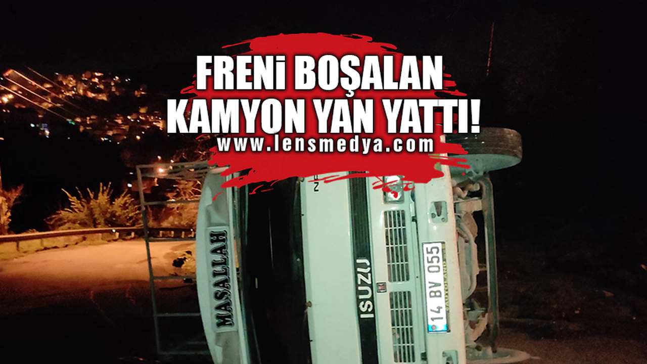 Lens Medya Haber SON DAKİKA FRENİ BOŞALAN KAMYON YAN YATTI!