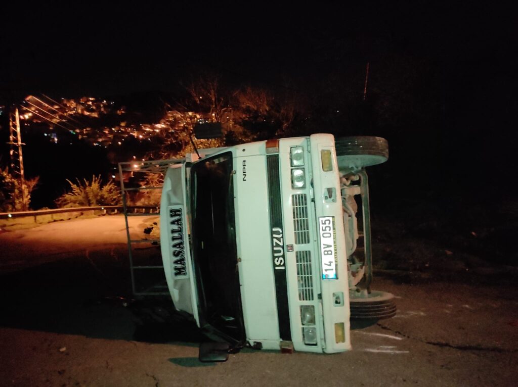 Kaza gece saatlerinde Güldere Mahallesi Yumurtaş Sokak üzerinde meydana geldi. Edinilen bilgiye göre Emin E. İdaresindeki 14 BV 055 plakalı kamyonetin rampa yukarı çıktığı sırada benzini bitti. Bu sırada freni boşalarak geri doğru su kanalına giden kamyon devrildi. Kazada aracın sürücüsü ve yanında bulunan iki kişi yara almadan kurtuldu. Kaza nedeniyle trafiğe kapanan yol kamyonetin olay yerine gelen vinç yardımı ile kaldırılması ile yeniden ulaşıma açıldı.