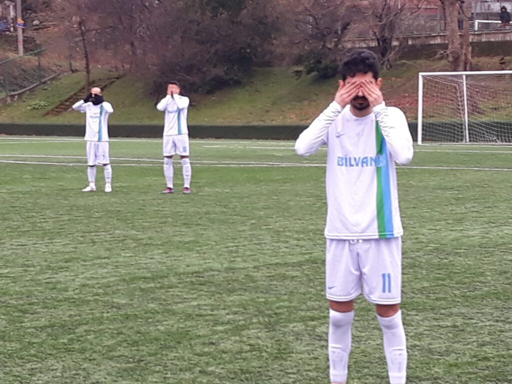 Zonguldak’ta amatör küme maçında hakem hatalarına tepki olarak Elvanpazarcıkspor ve Karamansporlu futbolcular sahada bir dakika boyunca gözlerini kapattı.