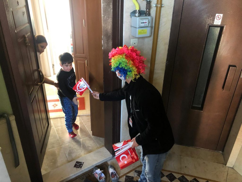 ZONGULDAK’ta 23 Nisan Ulusal Egemenlik ve Çocuk Bayramı’nı çocuklar Corona Virüs nedeniyle evlerinde kutladı. İl genelinde yayın yapan yerel ve ulusal basın temsilcileri, bir araya gelerek mahallelerde çocuklara Türk Bayrağı ve Mustafa Kemal Atatürk baskılı balonlar hediye etti. Palyaço kıyafeti giyen basın mensuplarını gören çocukların sevinci balkon ve kapı önlerini şenlendirdi. Basın mensuplarına çocuklarını sevindirdiği için teşekkür eden Murat Çökelezoğlu, “İnşallah devletimiz bunlarla ilgili önlemler alıyor. İnşallah çabuk sonuçlanır. 23 Nisan Çocuk Bayramı bu yıl evlerde kutlanıyor. Üzgünüz… Ne söyleyebiliriz ki… Devletimiz önlem almaya devam ediyor inşallah bir an önce sonuçlanır da kurtuluruz. Evden çıkın denilene kadar evdeyiz” dedi.