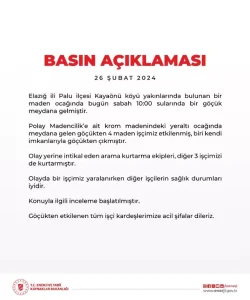 Elazığ’ın Palu ilçesinde bulunan bir maden ocağında meydana gelen göçük, ilk başta 3 işçinin toprak altında kalmasıyla endişe yaratmıştı. Ancak, hızlı ve etkili bir müdahale ile tüm işçiler kurtarıldı. Enerji ve Tabii Kaynaklar Bakanlığı, yaşanan olayla ilgili olarak tüm işçilerin kurtarıldığını ve yalnızca bir işçinin yaralandığını bildirdi. Göçüğün nedeni henüz tam olarak belirlenmemiş olsa da, kurtarma ekiplerinin özverili çalışmasıyla olası bir facia önlendi.