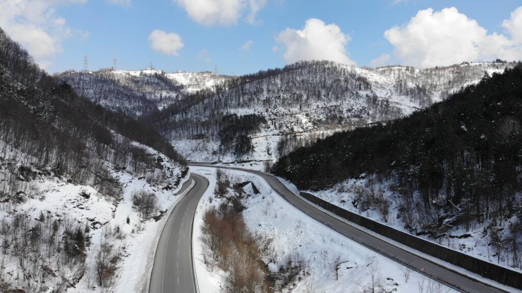 Zonguldak'ta yoğun kar yağışının ardından açan güneş Zonguldak-Ankara karayolunda adeta kartpostallık manzaralar oluşturdu. Beyaz gelinliğini giyen ormanlar havadan görüntülendi.