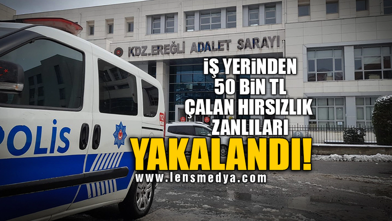Zonguldak’ın Ereğli ilçesinde çelik kapıyı kırarak girdikleri iş yerinden 50 bin TL çalan hırsızlık zanlıları polis tarafından kısa sürede yakalandı.
