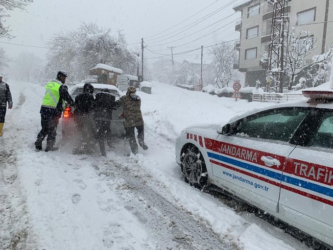 Zonguldak İl Jandarma Komutanlığı ekipleri karla mücadelede yolda kalan vatandaşların imdadına yetişti. İl Jandarma Komutanlığı ekipleri; karla mücadele çalışmaları kapsamında vatandaşlardan gelen yardım taleplerini ilgili kurum ve kuruluşlarla da koordinasyonu sağlayarak karşılamaya devam ediyor. Ekipler yoldan kalan vatandaşlara yardım ederek yol durumu hakkında da bilgiler verdi.