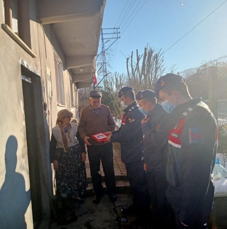 Zonguldak'ta jandarma ekipleri şehit ailesini ziyaret ederek Türk Bayrağı hediye etti.