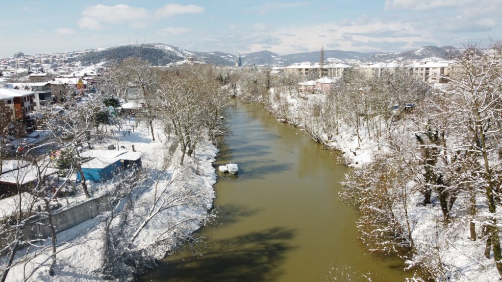 Türkiye’nin üzerinde su taşımacılığı yapılabilen tek ırmağı olan Bartın Irmağı’nın Orduyeri Köprüsü, Sevgi Parkı ve Yalı mevkiinden geçtiği bölgelerde karla kaplanan ağaçlar kartpostallık görüntülerin ortaya çıkmasına neden oldu.