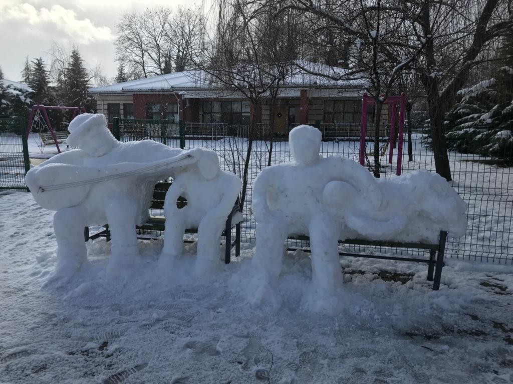 Zonguldak'ın Devrek ilçesindeki engelsiz yaşam merkezindeki gençler kardan Aşık Veysel figürü yaptı.
