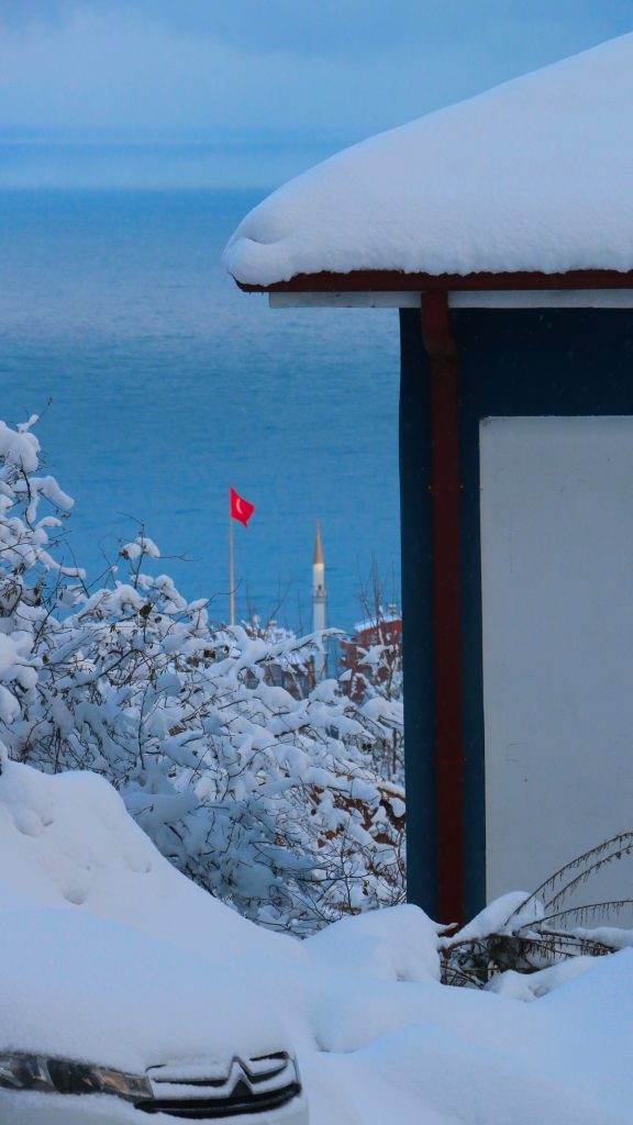 Bir taraftan karla mücadele devam ederken bir taraftan da ortaya kartpostallık görüntüler ortaya çıktı. Kentin yüksek kesimlerinde oluşan manzaralar deniz ile birleşince ortaya seyrine doyumsuz görüntüler çıktı.