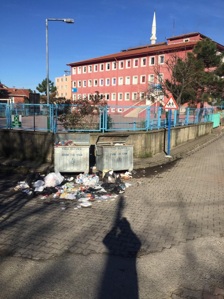 Zonguldak’ın Kozlu İlçesinde bulunan 19 Mayıs 100.Yıl İlköğretim okulunun önündeki çöpler görenlerin tepkisine neden oldu.
