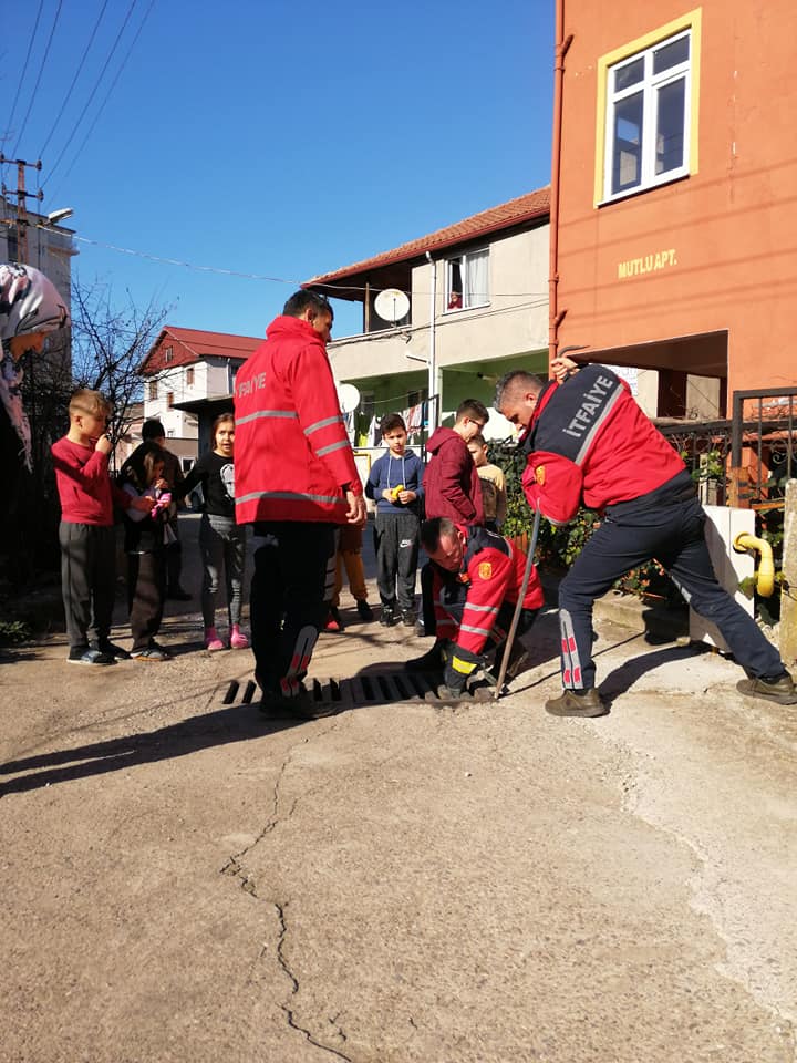 Zonguldak’ın Kozlu İlçesi Topbaşı Merkez Mahallesi dantel sokakta mahalle kanalizasyon giderine kedi sıkıştı.