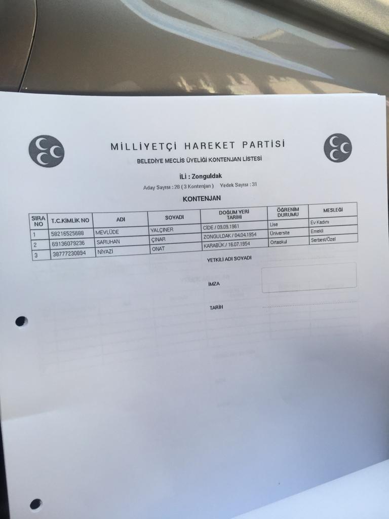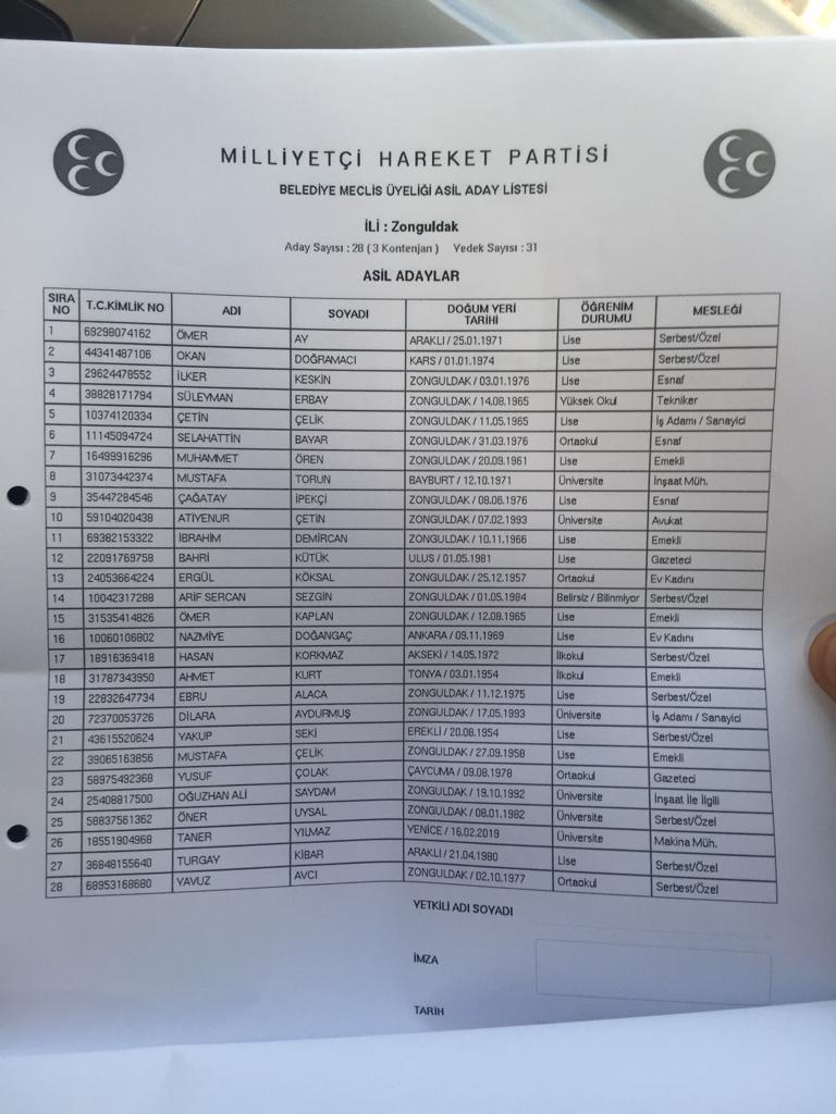 Milliyetçi Hareket Partisi Zonguldak Belediye Başkan adayı Hamdi Ayan’ın Belediye Meclis Üyesi listesi belli oldu.