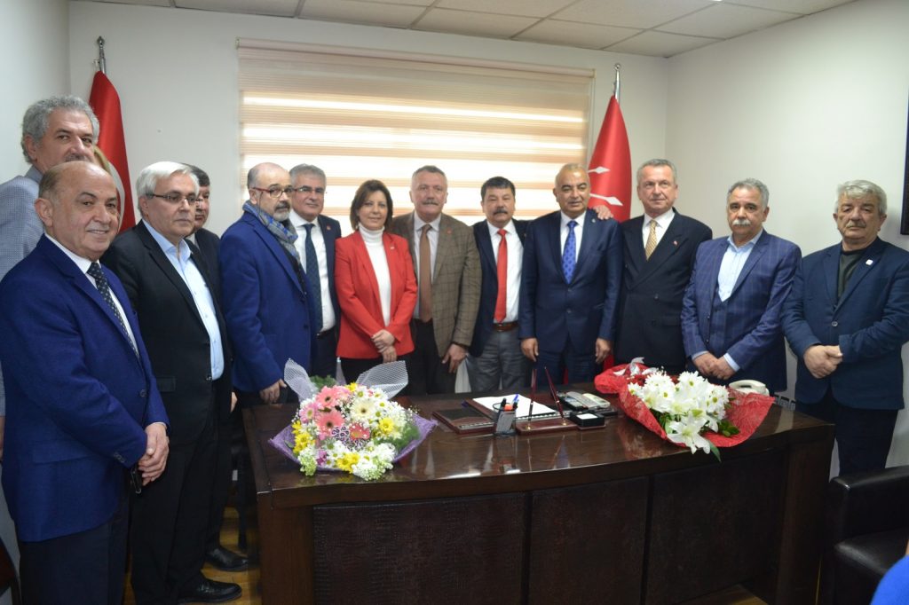Ardından CHP İl Binası’na gelen Murat Pulat, eski İl Başkanı Hakkı Güney’e çiçek takdim ederek görevi devraldı.