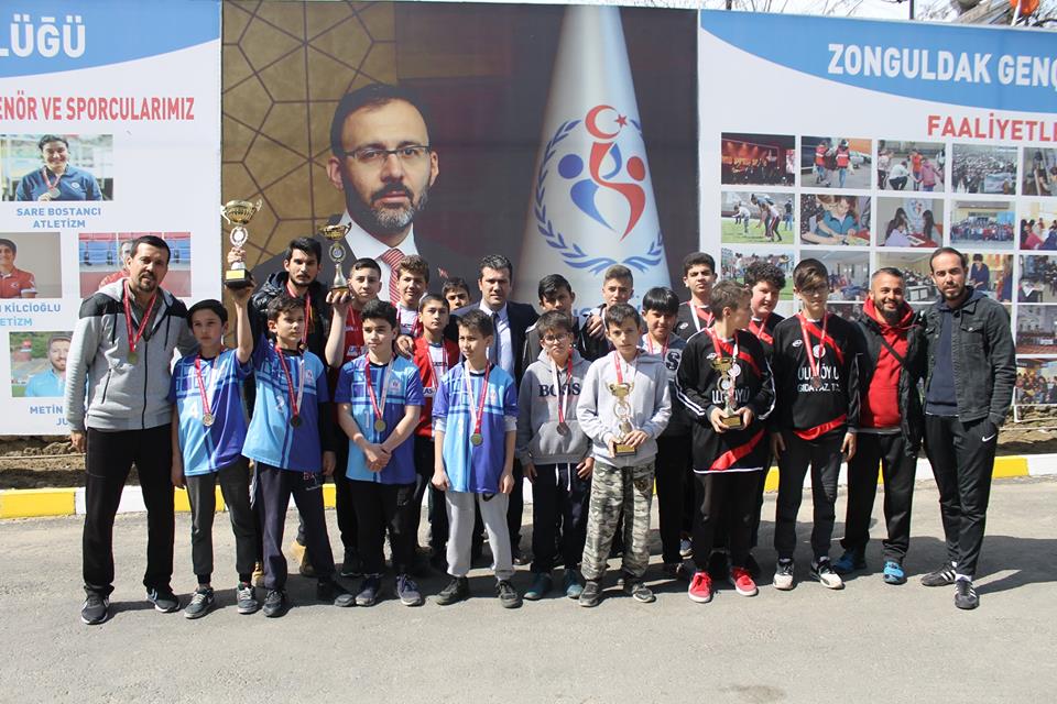 Dereceye giren sporculara ödüllerini Zonguldak Gençlik Hizmetleri ve Spor İl Müdürü Hakan Yüksel, Şube Müdürü Gazel Güven ve Beden Eğitimi Öğretmenleri takdim etti.