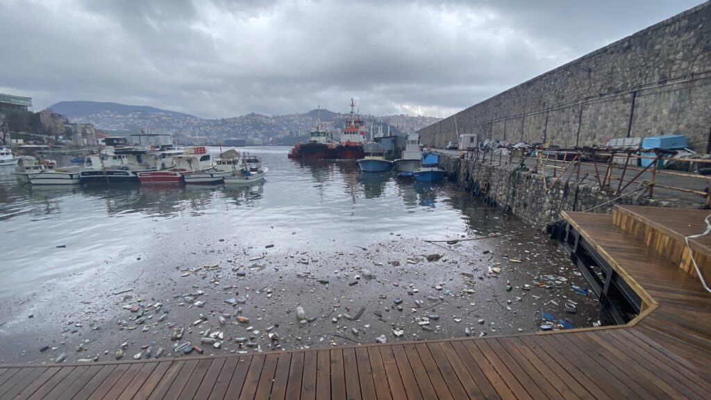 Zonguldak’ta denize atılan plastik atıklar, dalgalarla beraber limana vurdu.