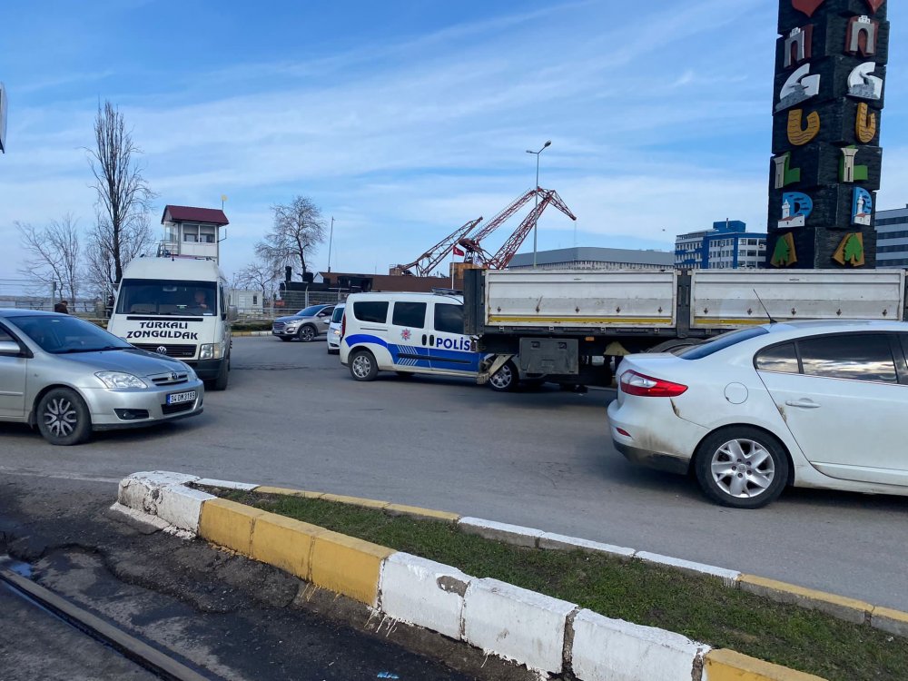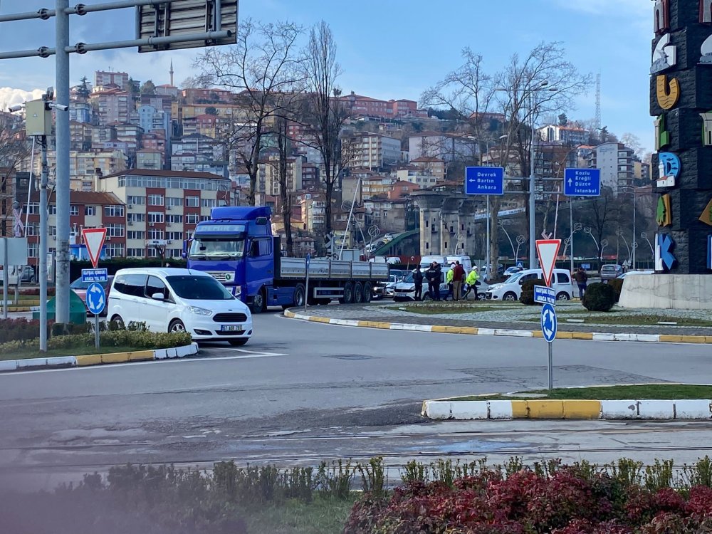 Zonguldak’ta Tır ile polis aracının karıştığı kazada araçlarda maddi hasar meydana geldi.