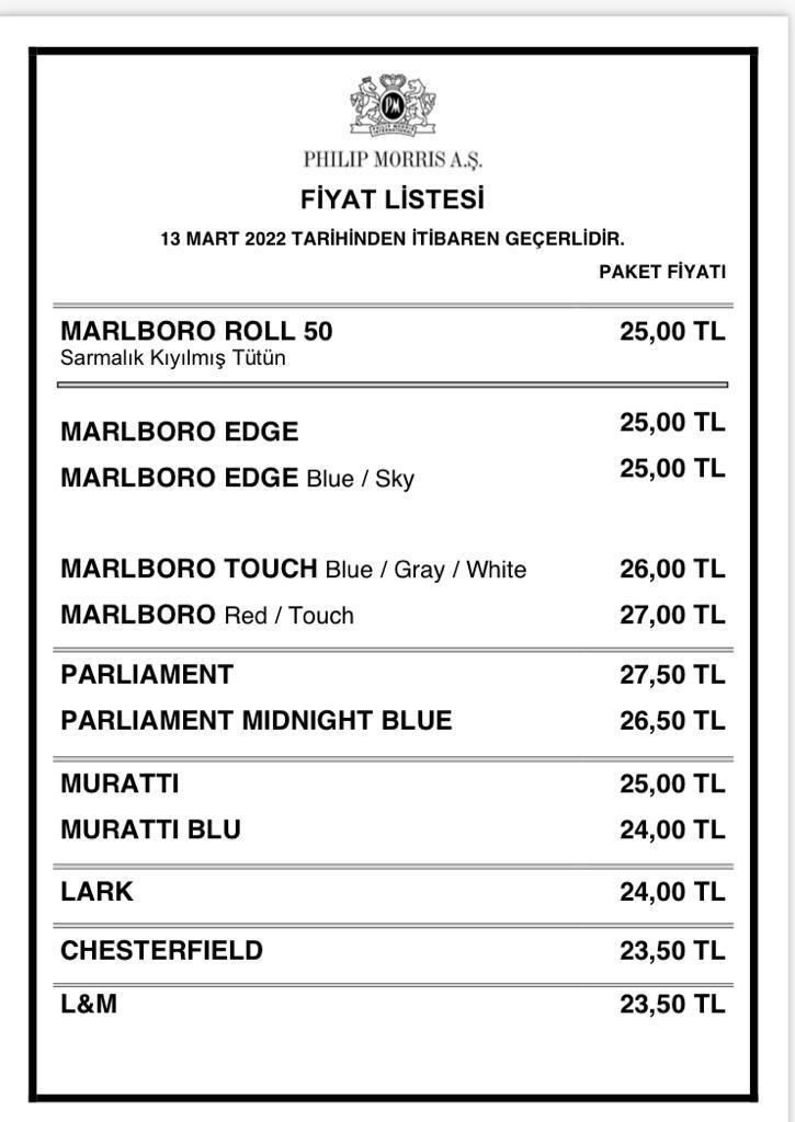 Sigara tiryakileri güne zamla uyandı. Marlboro, Parlıament, Muratti, Mark, L&M ve Chesterfield sigaralarına 2 lira zam yapıldı.