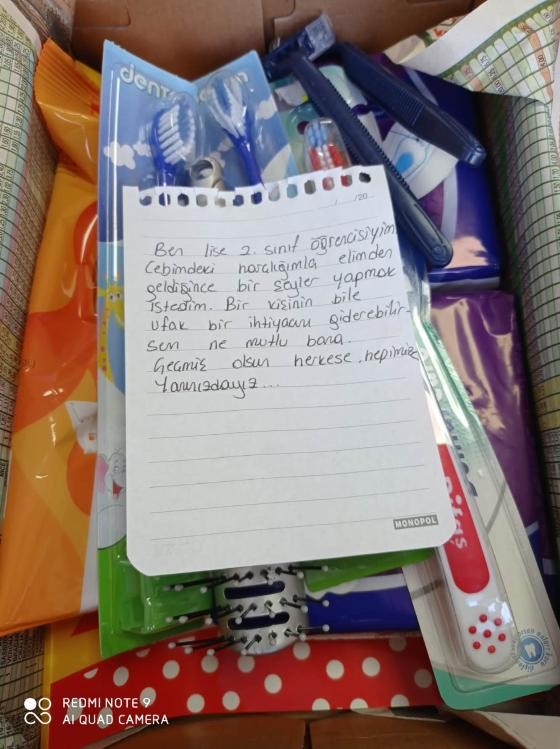 Bir lise öğrencisi ise yazdığı mektupla İzmir'deki vatandaşlara destek verdi.