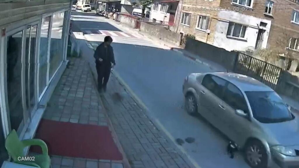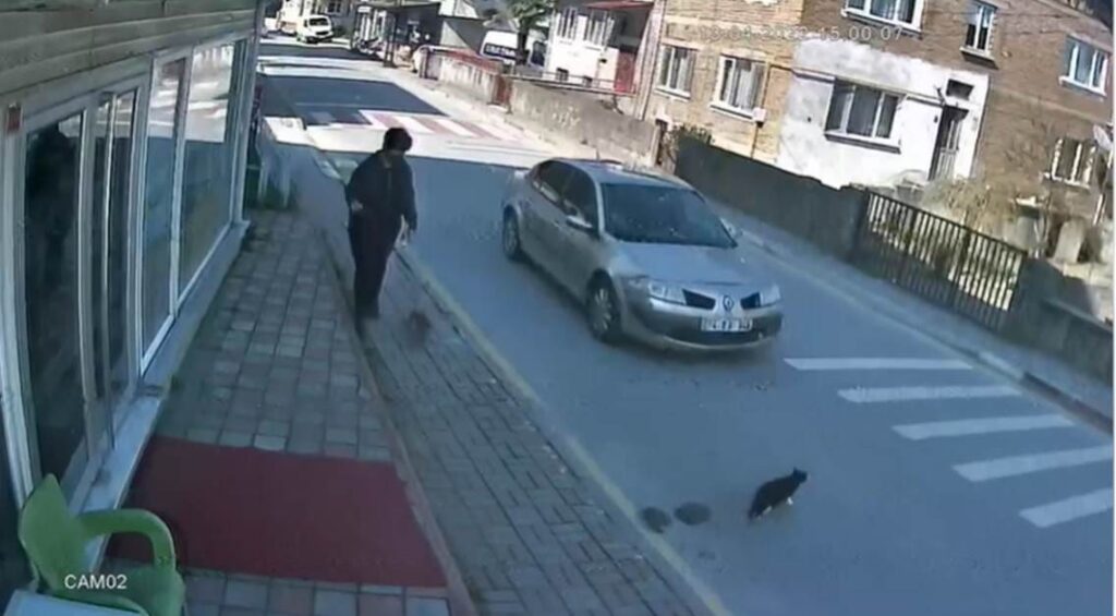 Çevredeki vatandaşların gözü önünde meydana gelen olay veterinerlik ofisinin kameralarına da saniye saniye yansıdı.