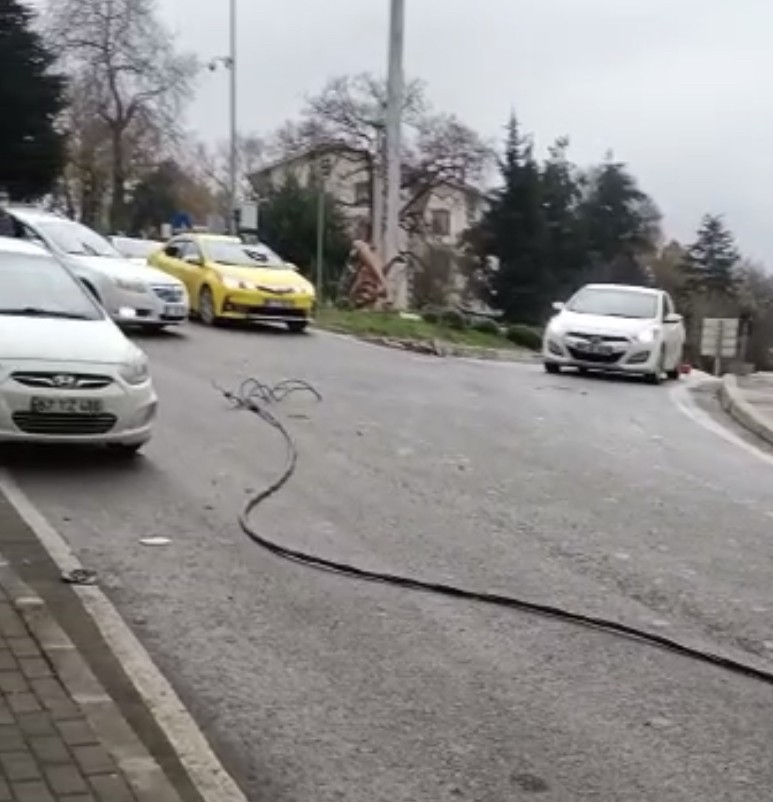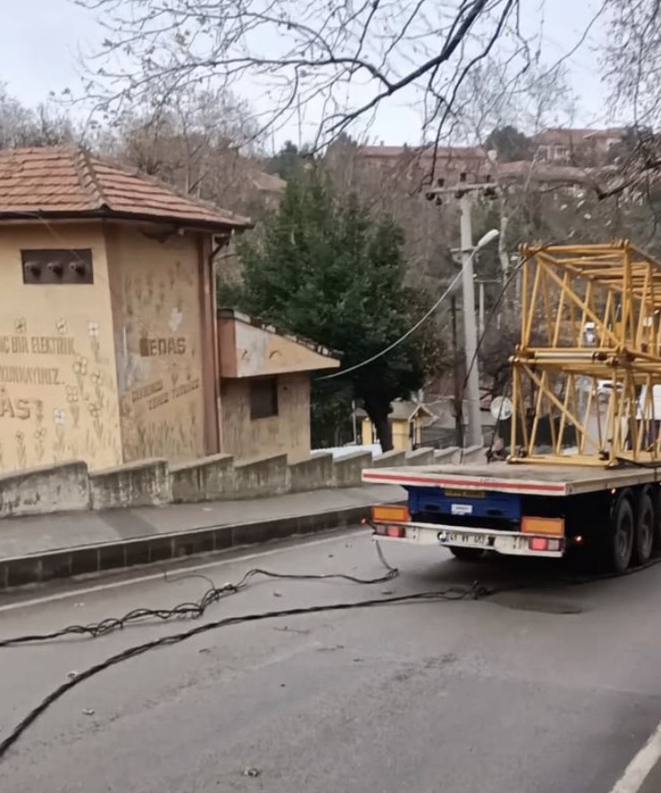 Zonguldak’ın Fener semtimde tırın dorsesinin elektrik tellerine takılması nedeniyle kopan teller yola düştü. Yol kısa süreliğine trafiğe kapandı.