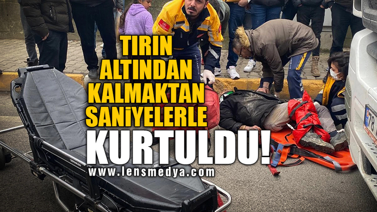 Zonguldak'ta yolun karşısına geçmeye çalışan yaşlı adam tırın altında kalmaktan saniyelerle kurtuldu.