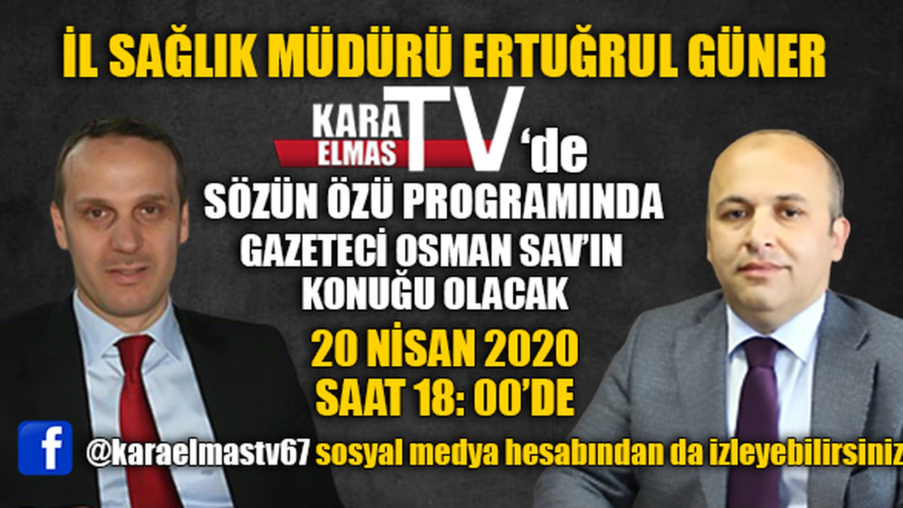 Zonguldak İl Sağlık Müdürü Ertuğrul Güner, Karaelmas TV stüdyolarında Gazeteci Osman Sav’ın konuğu olacak.
