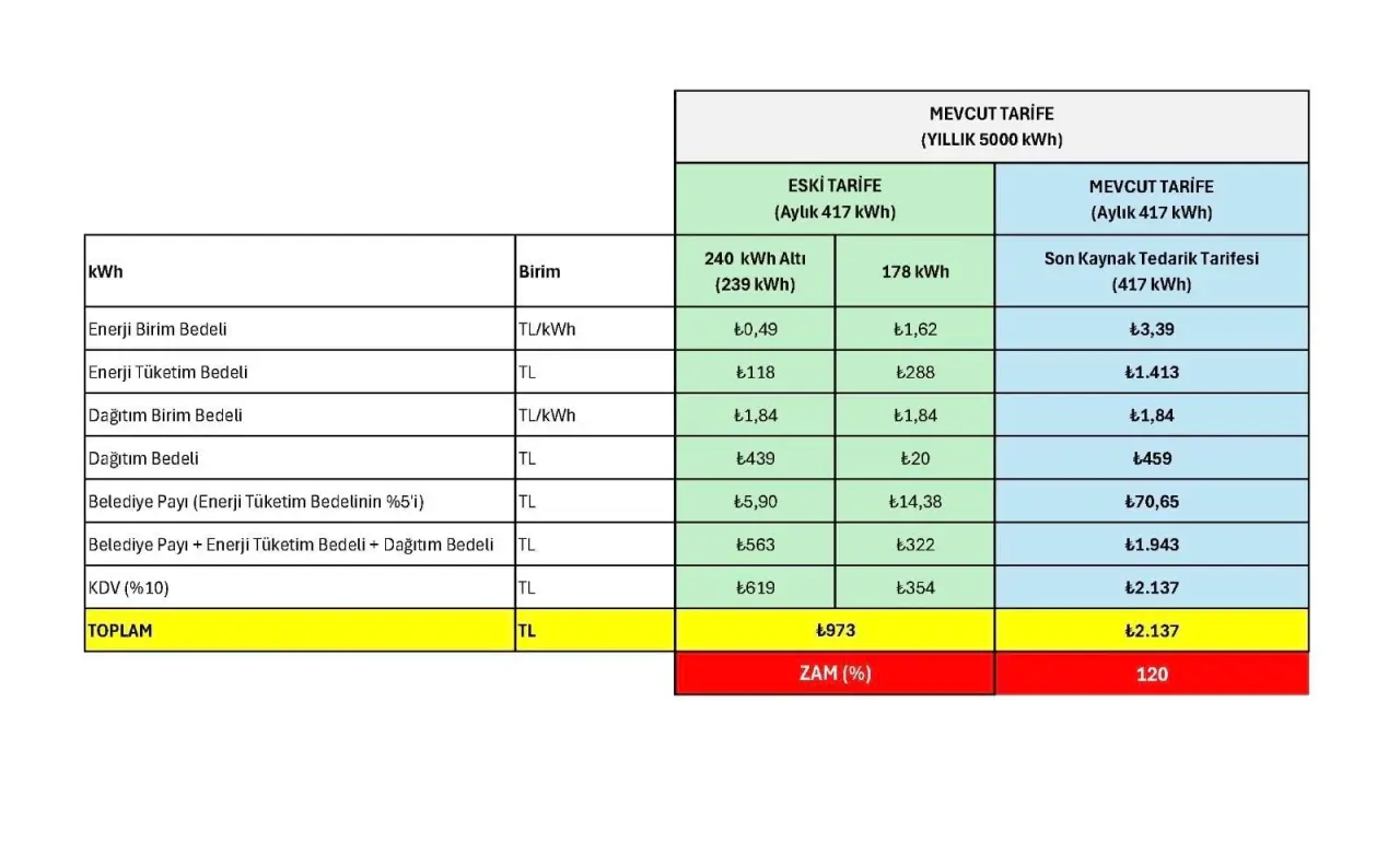 AKP, 2025 yılı elektrik tüketimi toplamı 3 bin kilovatsaati aşan, yani yıllık elektrik faturası toplamı 8.000 TL’yi geçen konut abonelerinin, aylık ücret tarifesini değiştiriyor.