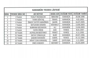 Türkiye Taş Kömürü Kurumu son olarak 118 yedek işçinin çağrılmasına karar verdi. Türkiye Taş Kömürü kurumundan yapılan açıklamada; Zonguldak'tan 70, Karabük'den 37 ve Bartın'dan ise 11 yedek ismin çağrıldığı bir tek şöyle denildi; "2000 Gruplu işçi alımı kura çekimi sonucunda “Asıl” aday olarak işe girmeye hak kazanan, ancak sağlık muayenesi yapılmak üzere sevk edildikleri tam teşekküllü hastanelerce haklarında 'Çalışamaz' kararı verilen adayların (17.01.2024 tarihine kadar Kurumumuza intikal eden rapor sonuçlarına göre) yerine, aşağıdaki listelerde isimleri bulunan YEDEK adaylar çağrılmıştır. YEDEK adayların; ücretleri kendileri tarafından karşılanmak suretiyle TTK Beden Gücü Yönergesinin hükümlerine göre sağlık muayenelerinin yapılabilmesi için Kurumumuzca belirlenen ilgili Hastanelere sevk edilmek üzere; 18.01.2024 – 24.01.2024 tarihleri arasında aşağıdaki belgeler ile birlikte Zonguldak TTK Genel Müdürlüğü Personel Daire Başkanlığı İşçilik Servisine müracaat etmeleri gerekmektedir. YEDEK ADAYLARIN YANINDA GETİRECEĞİ BELGELER • Nüfus Cüzdanı ve fotokopisi • En son bitirdiği okul diploması ve fotokopisi • 4 adet vesikalık resim • İkametgâh belgesi • Nüfus kayıt örneği • Varsa askerlik terhis belgesi (fotokopi) • Varsa Sigorta sicil numarası ve Başlangıç tarihi (Gün, Ay, Yıl) (Fotokopi) NOT: Belgelerinden herhangi biri eksik olan adayların hiçbir belgesi kesinlikle alınmayacak olup, belgelerin şeffaf dosya içerisinde getirilmesi gerekmektedir. NOT: Listede ismi bulunan YEDEK adayların, Kurumumuzca sevk edildiği hastane tarafından TTK Beden Gücü Yönergesinin hükümlerine göre yapılacak olan sağlık muayeneleri sonucunda alacakları “Yeraltında pano-ayak üretim işçiliği sanatında çalışır” kararlı İlk İşe Giriş Sağlık Raporlarına ve İl Emniyet Müdürlüklerince yapılacak olan Arşiv Araştırması sonucuna göre işe başlatılacak olup, “ÇALIŞAMAZ” kararı alan veya Arşiv Araştırma sonucu OLUMSUZ olan adayların yerine ise sıradaki YEDEK adaylar çağrılacaktır. Evrak teslimi için son tarih 24.01.2024 mesai bitimine kadar (17:00) olup, bu tarihe kadar Kurumumuza belgeleri teslim etmeyen adayların yerine yedek adaylar çağrılacaktır. Bu ilan, yönetmelik hükümlerine göre tebligat niteliğinde olup, işçi adaylarına ayrıca bir tebligat yapılmayacaktır.