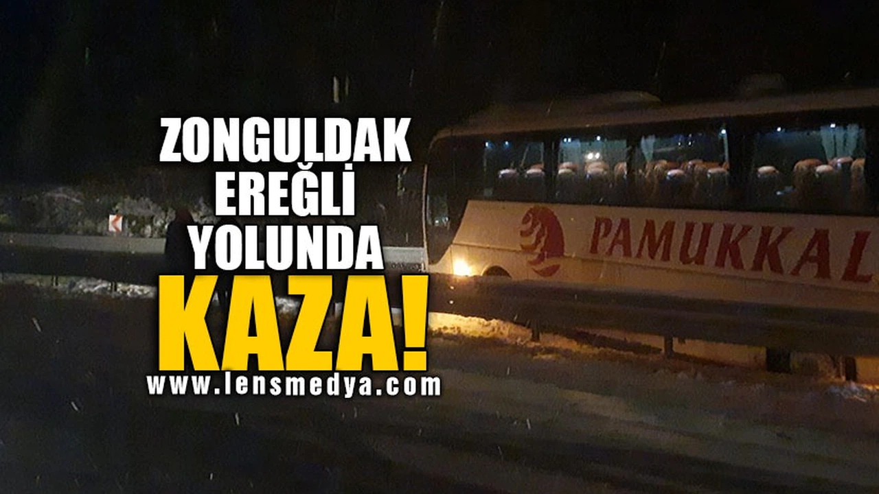Zonguldak-Ereğli karayolunda kayarak yoldan çıkan yolcu otobüsü bariyerlere çarparak durabildi. İçerisinde yaklaşık 15 yolcunun bulunduğu otobüste yaralanan olmadı.