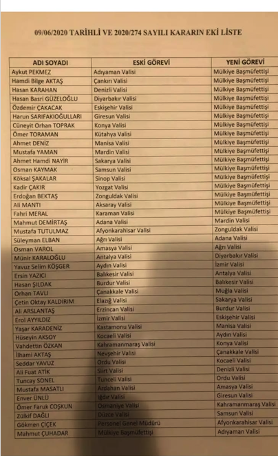 Cumhurbaşkanı Recep Tayyip Erdoğan, Valiler Kararnamesini imzaladı. Zonguldak Valisi Erdoğan Bektaş Mülkiye Başmüfettişi olarak merkeze alındı. Zonguldak Valiliğine Afyon Valisi Mustafa Tutulmaz atandı.