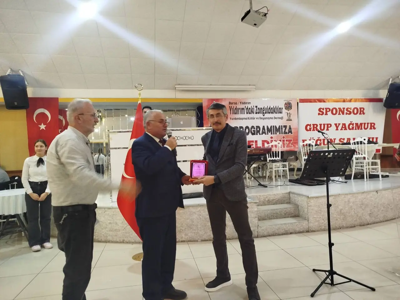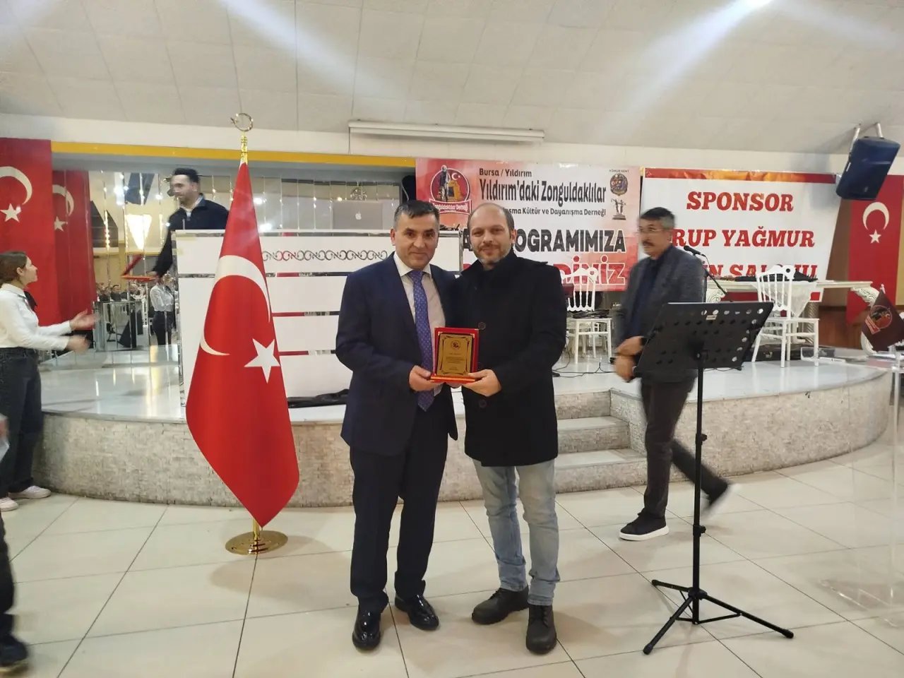Bursa Yıldırım Zonguldaklılar Yardımlaşma ve Dayanışma Kültür Derneği Başkanlığı tarafından programa katkı ve destek veren sponsorlar olmak üzere protokole plaketler takdim edildi.