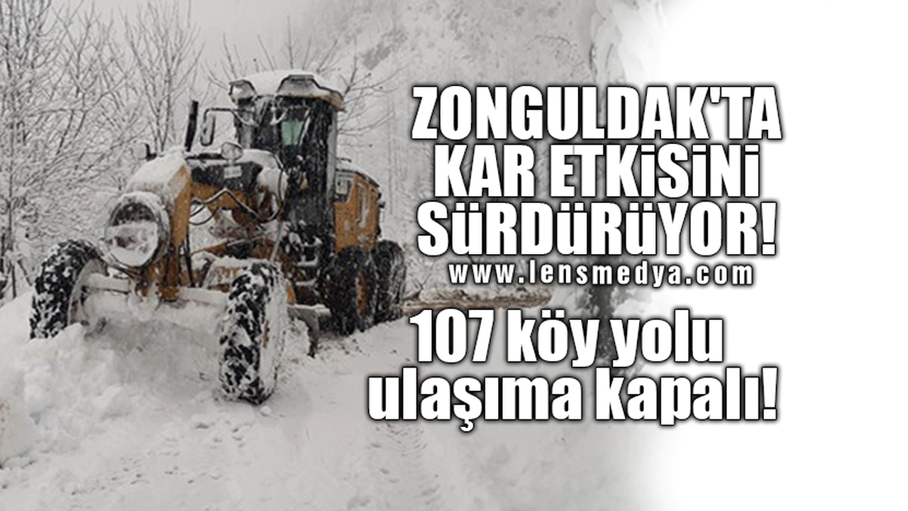 Zonguldak'ta dün akşam saatlerinden yoğun şekilde etkisini gösteren kar yağışıyla kent merkezi beyaza büründü. Karla kapanan 107 köy yolunu açma çalışmaları ise sürüyor.